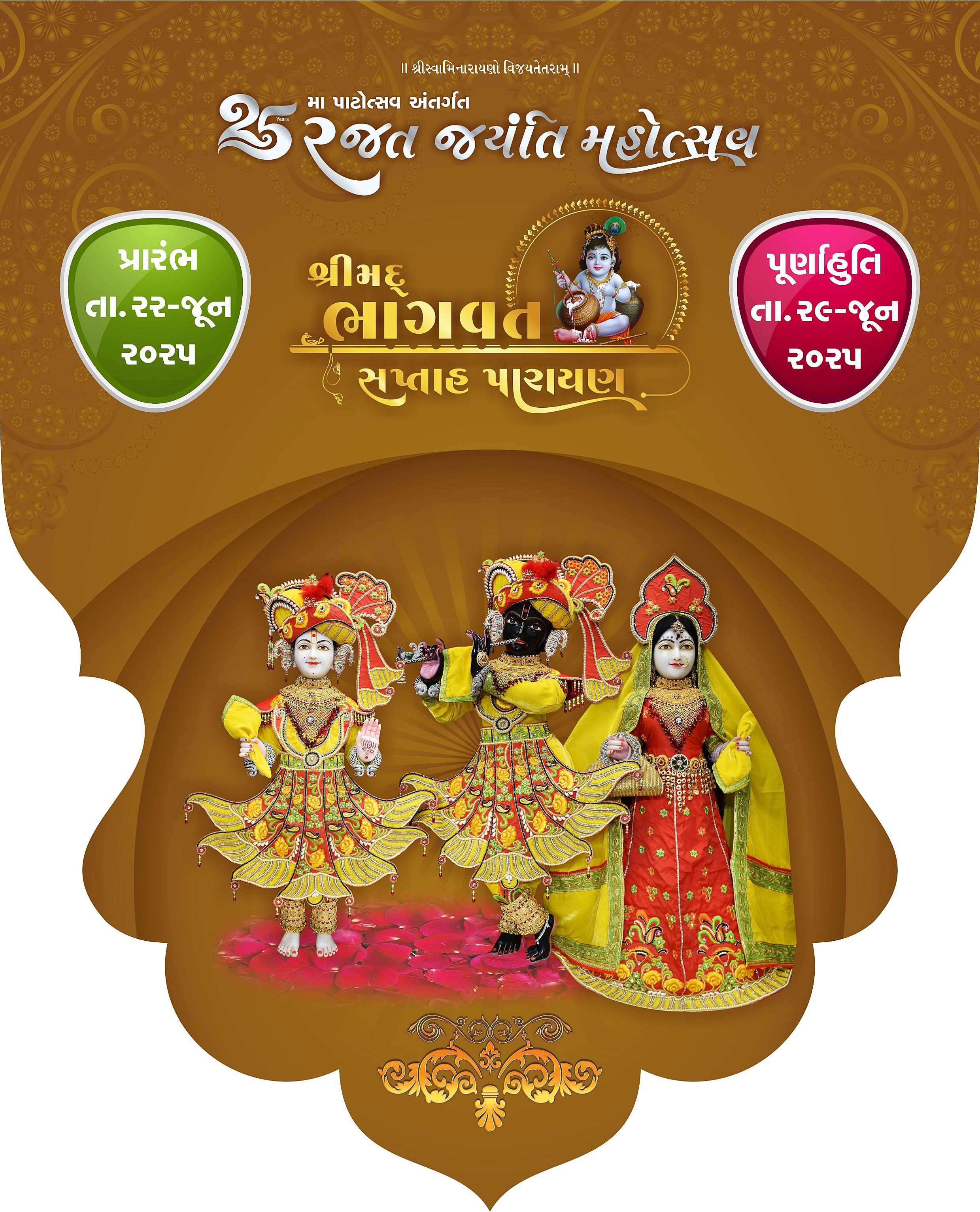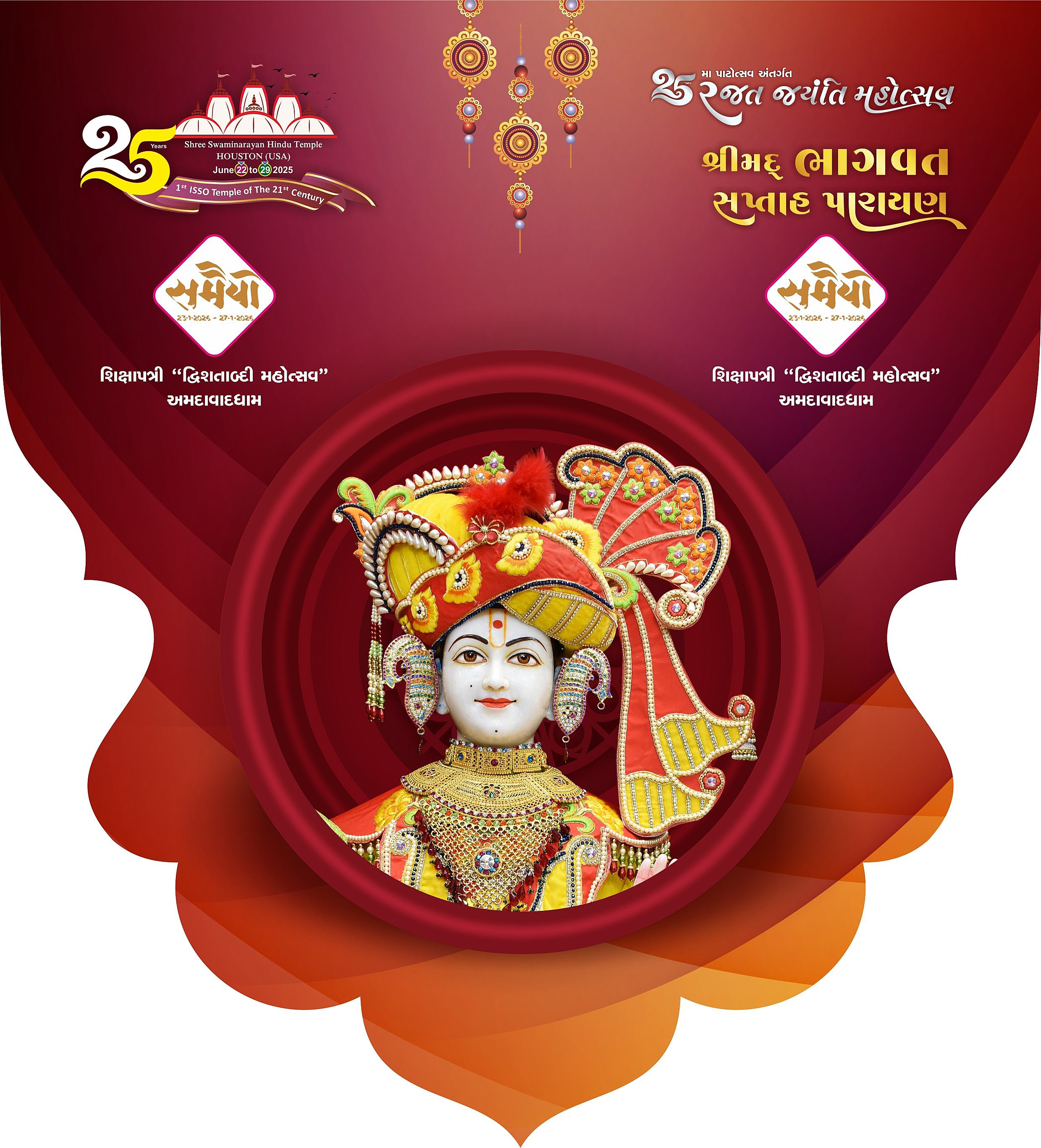 Shree Swaminarayan Mandir Houston will be celebrating 25th Patotsav, Rajat Jayanti Mahotsav from Monday 23rd June to Sunday 29th June 2025
