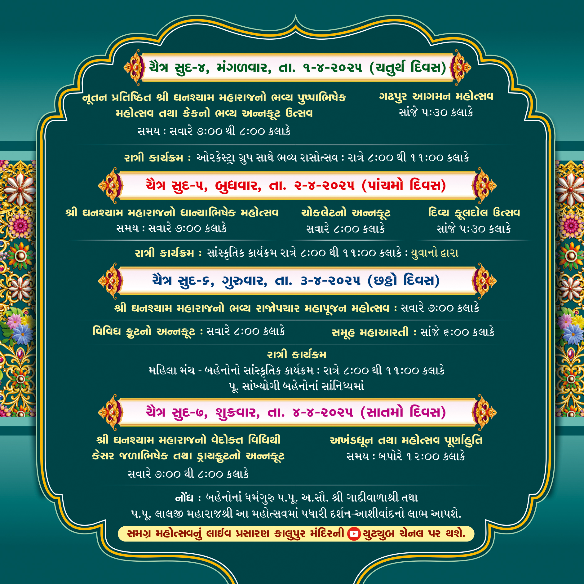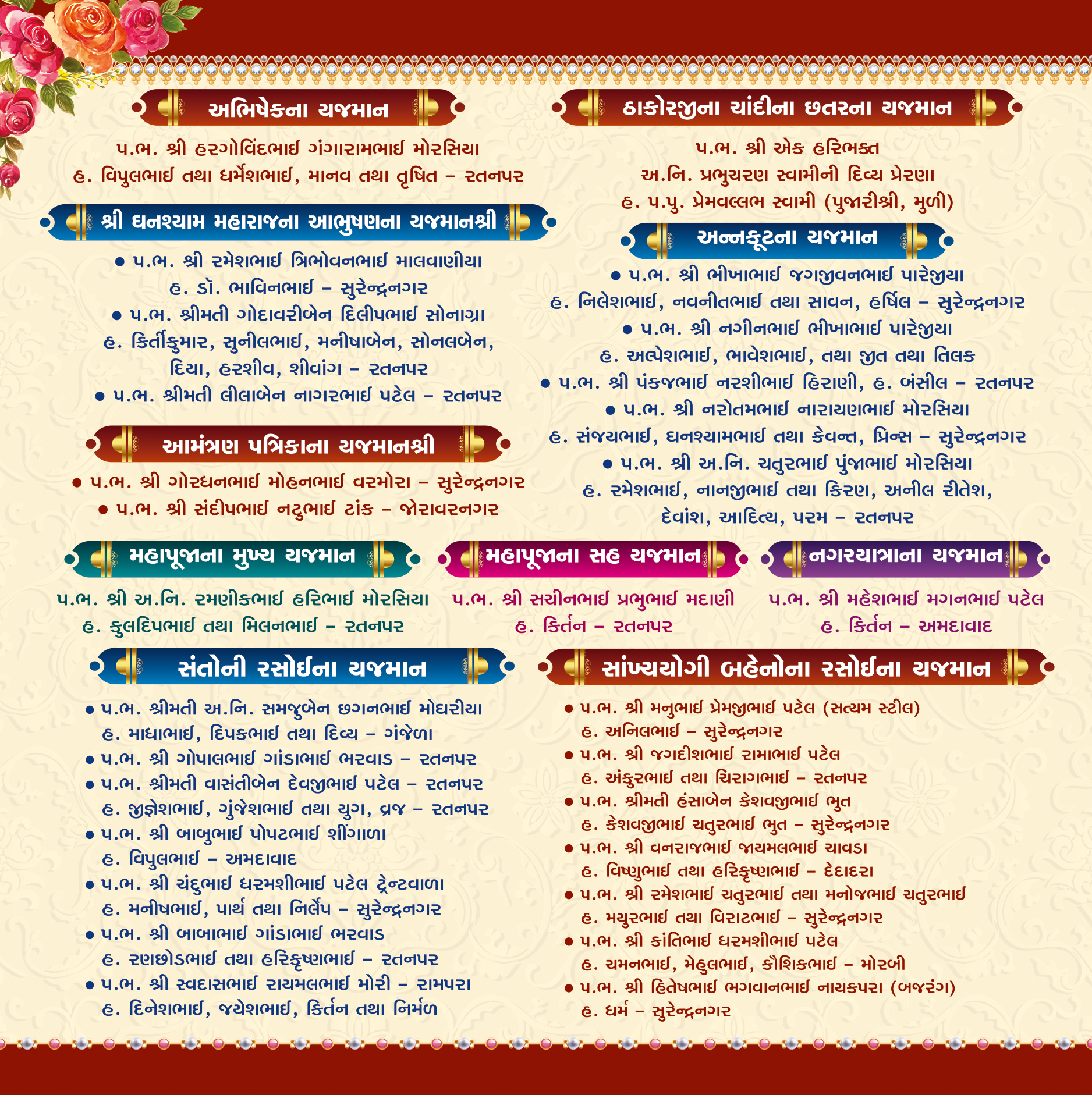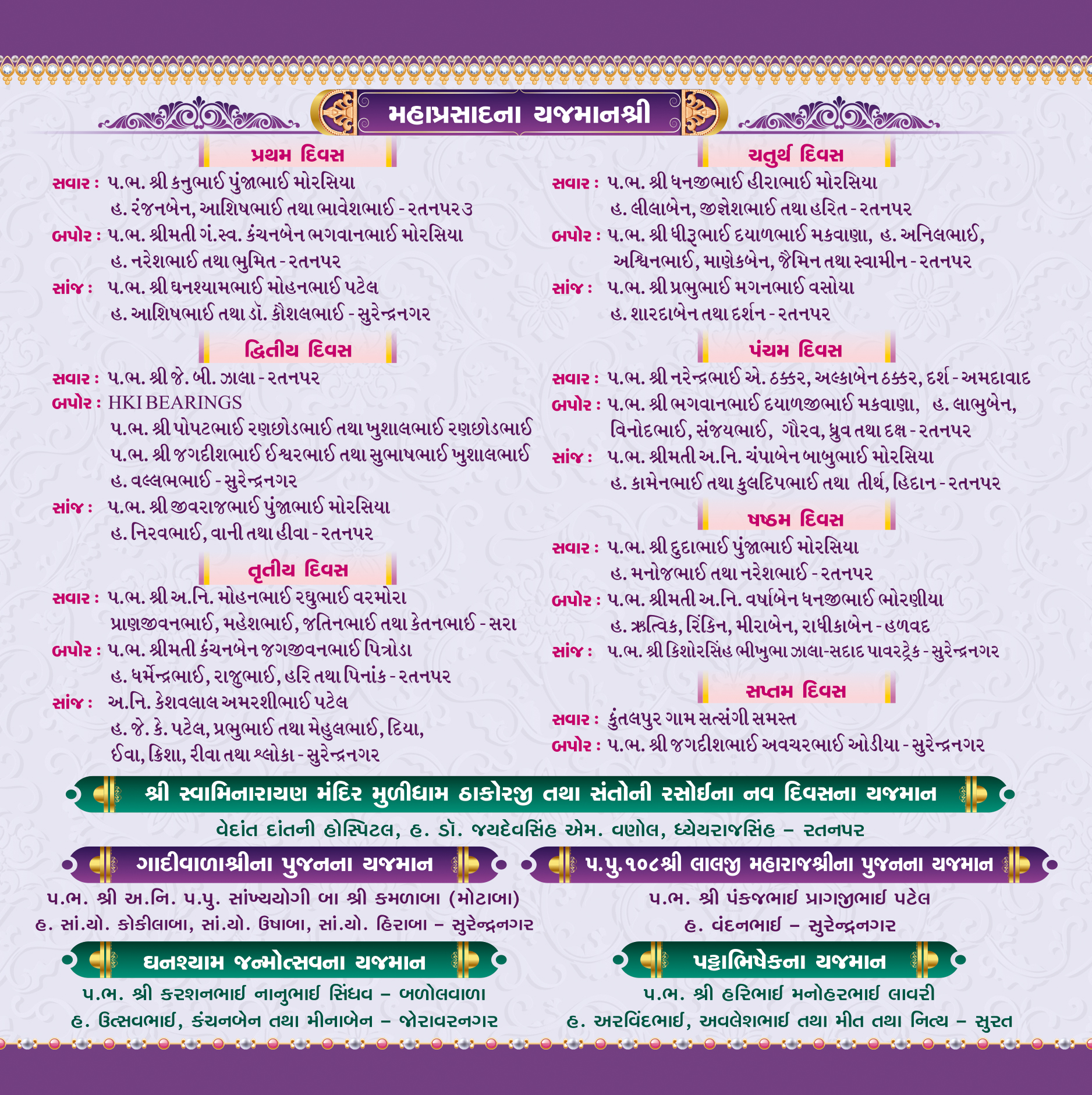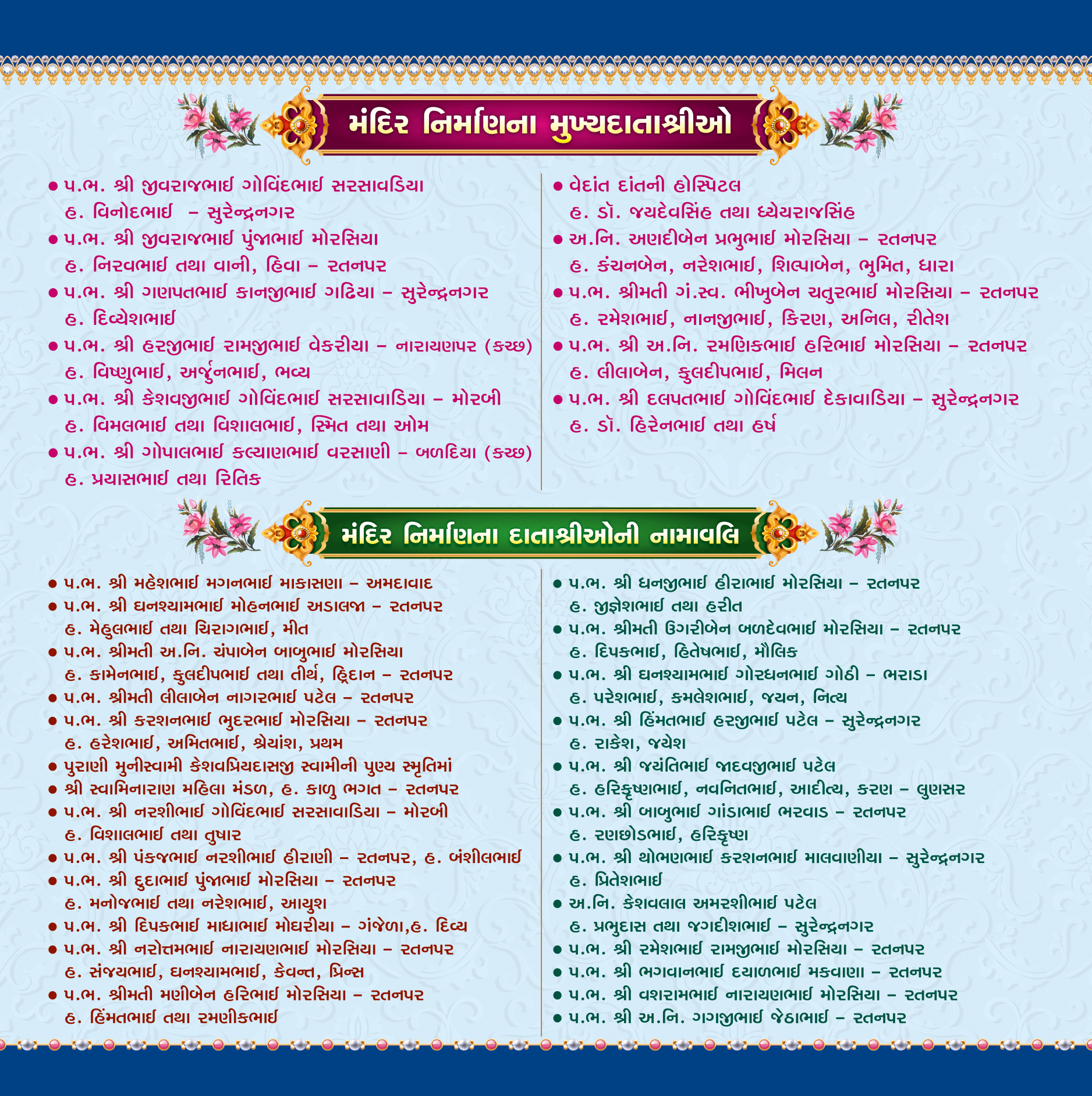 Shree Swaminarayan Mandir Ratanpur will celebrate their Murti Prathista Mahatosav and Shreemad Satsangi Jivan Katha from Saturday 29th March 2025 to Friday 4th April 2025