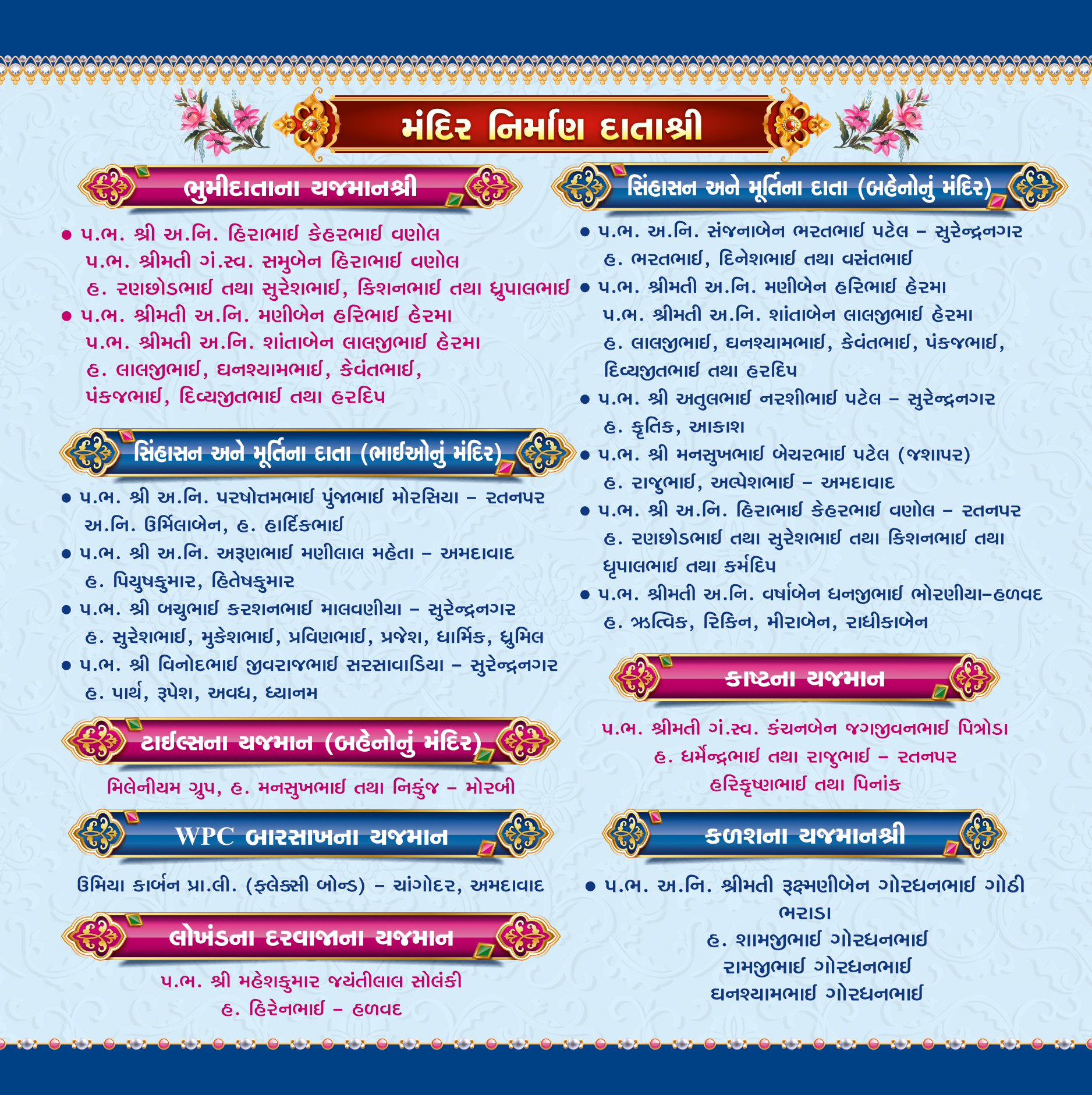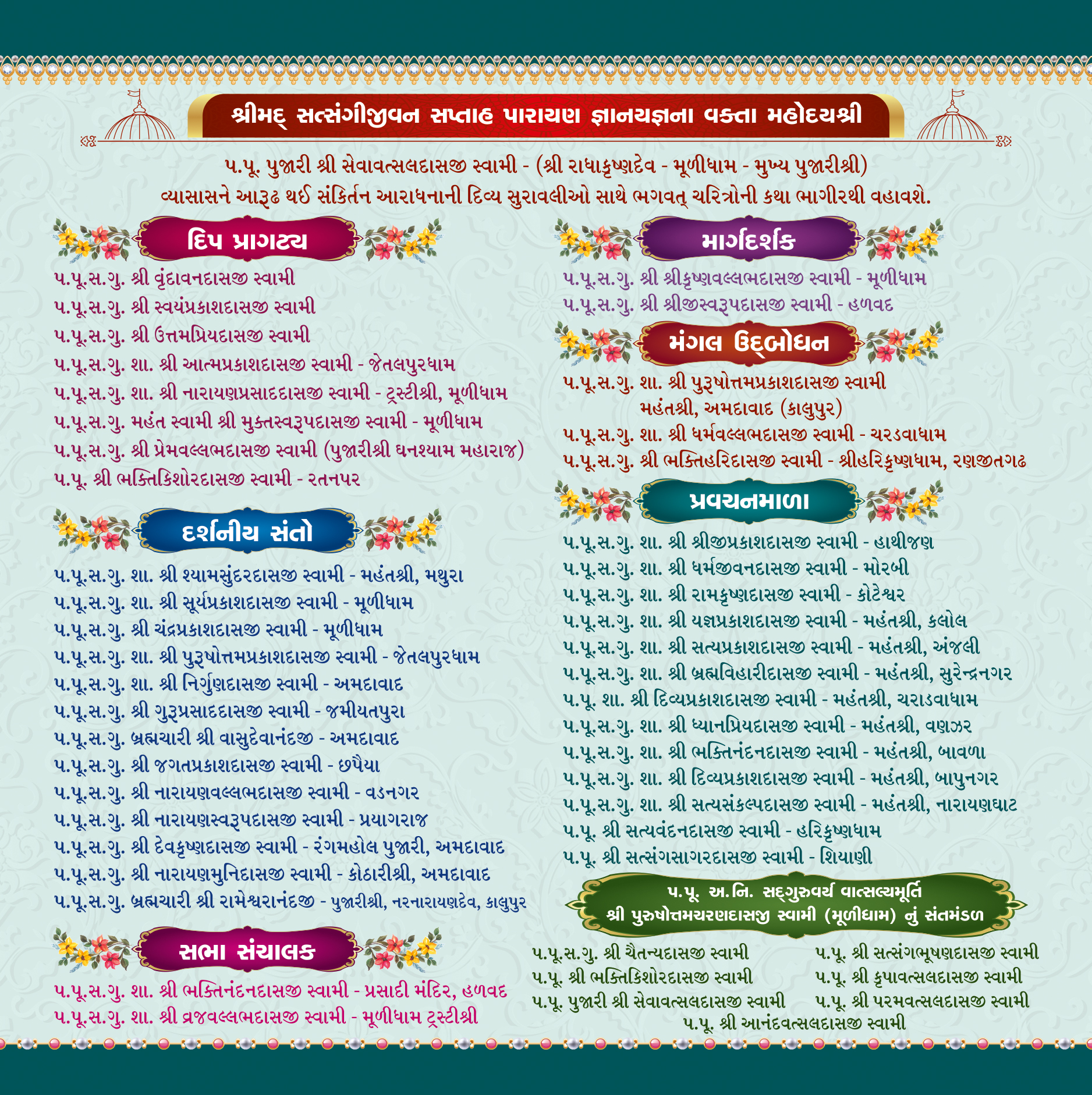 Shree Swaminarayan Mandir Ratanpur will celebrate their Murti Prathista Mahatosav and Shreemad Satsangi Jivan Katha from Saturday 29th March 2025 to Friday 4th April 2025