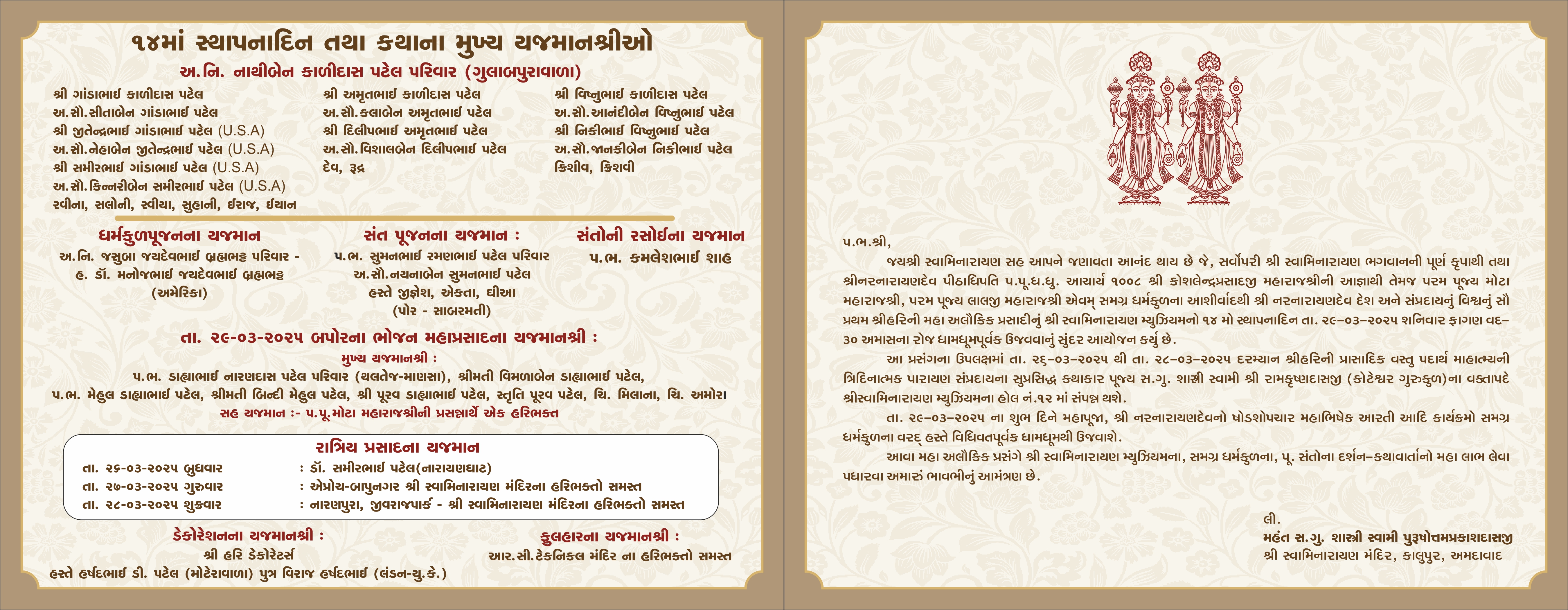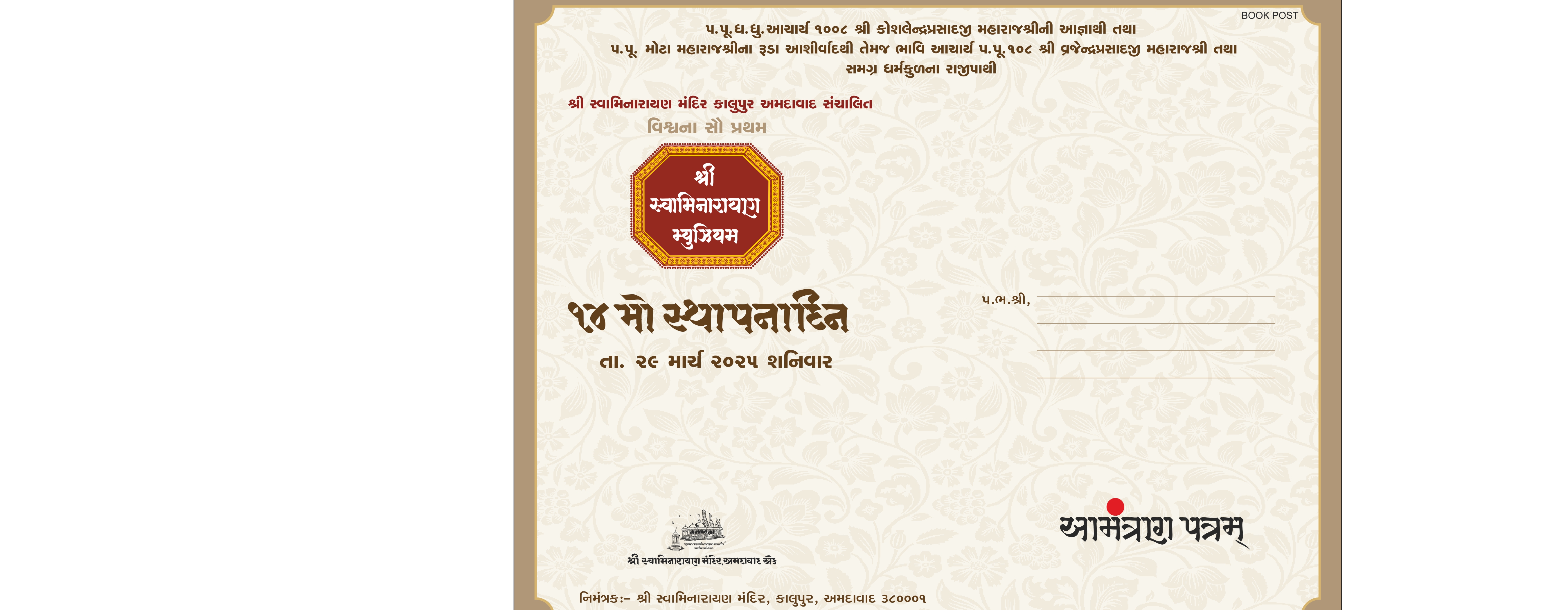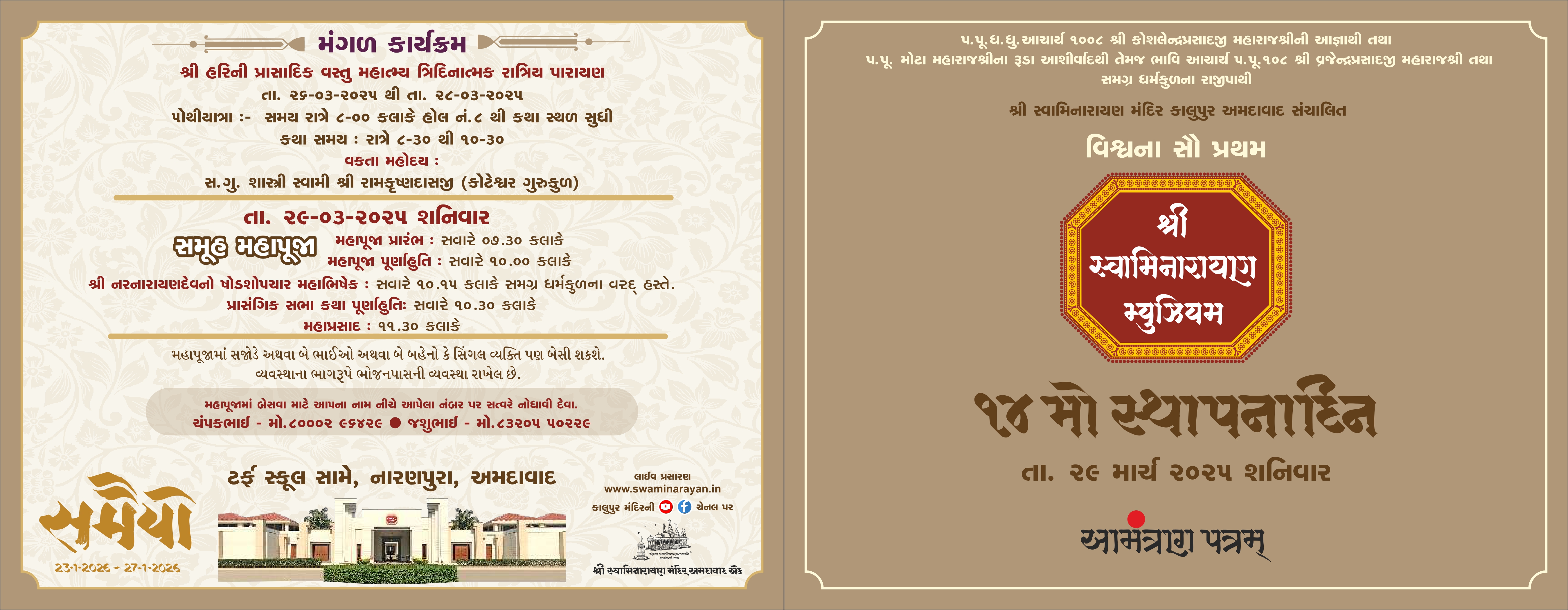 Shree Swaminarayan Musuem will celebrate 14th Patotsav from Wednesday 26th March 2025 to Friday 29th March 2025
